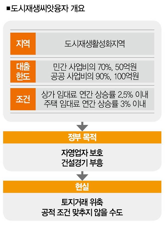 문제는 '도시재생씨앗'의 원래 역할이 공급만은 아니란 점이다. 서민 주거의 안정화를 꾀하고, 자영업자를 보호하겠다는 취지도 갖고 있다. 실제로 '도시재생씨앗'은 저리에 대출을 해주는 만큼 지켜야 할 조건이 있다.
