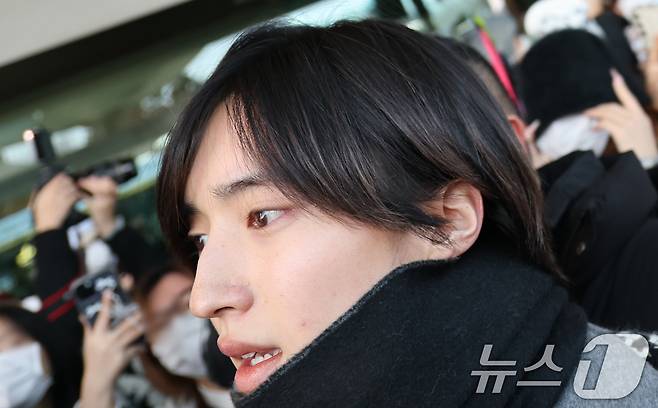 (김포공항=뉴스1) 권현진 기자 = 미치에다 슌스케(道枝駿佑)가 내한 공연을 위해 9일 김포국제공항을 통해 입국하고 있다. 2025.1.9/뉴스1
