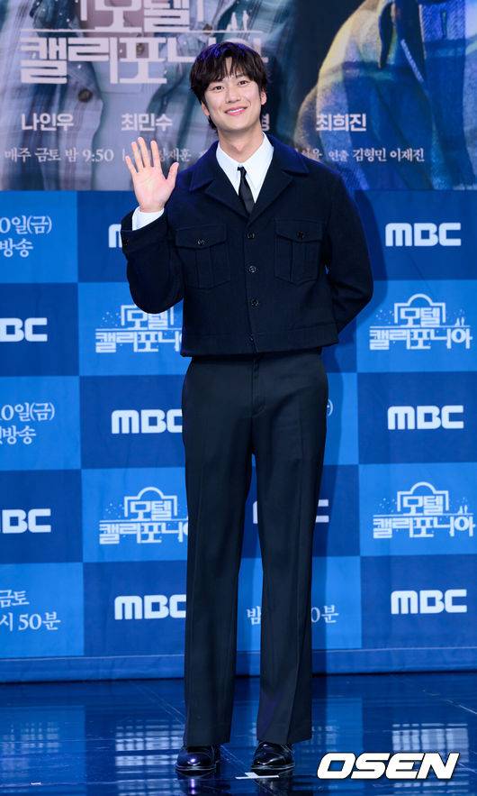 나인우는 9일 오후 서울시 마포구 상암동에 위치한 MBC 사옥 골든마우스홀에서 진행된 '모텔 캘리포니아'(극본 이서윤, 연출 김형민 이재진, 약칭 '모텔캘리') 제작발표회에 참석했다. 그는 이 자리에서 방송인 박경림의 진행 아래 배우 이세영, 최민수, 김태형, 최희진, 김형민 감독과 작품에 대해 이야기를 나눴다.