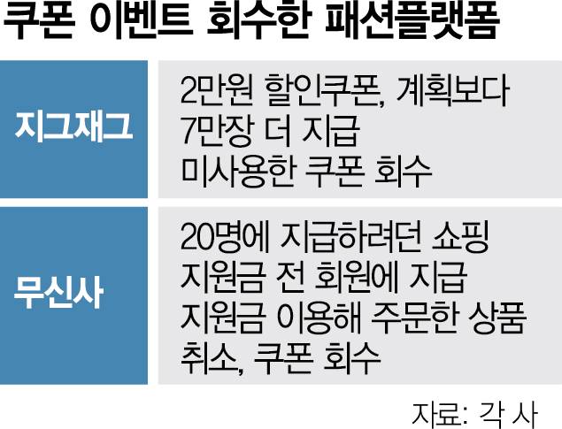 이번엔 쿠폰 줬다가 뺏었다 지그재그·무신사 고객 '부글'
