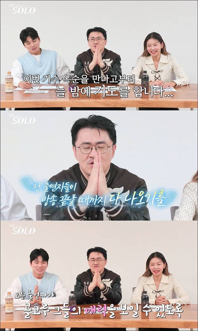 데프콘의 기도가 무용지물이 됐다. '나는 솔로' 24기 방송 초반부터 옥순의 직업 뻥튀기 의혹이 제기되며 논란이 되고 있다.