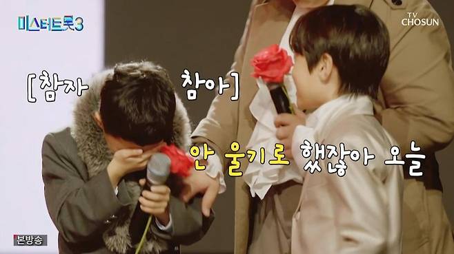 '미스터트롯3' 유소년부 2조 박정민이 현역부 4조의 무대를 보고 눈물을 쏟았다.