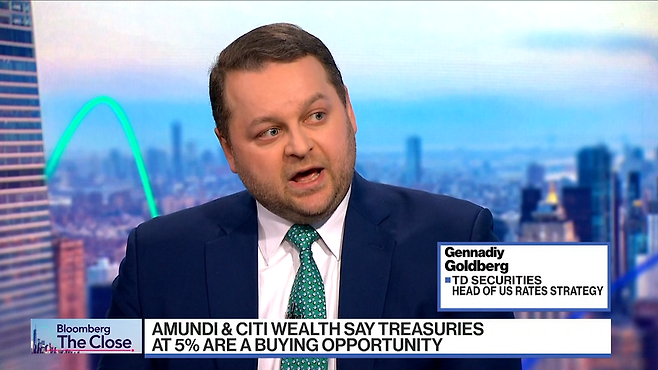골드버그 책임자는 "10년물 국채금리가 5%를 찍을 수 있다고 생각한다"며 "하지만 장기 투자자들에게는 매우 좋은 매수 기회라고 생각한다"고 밝혔습니다.