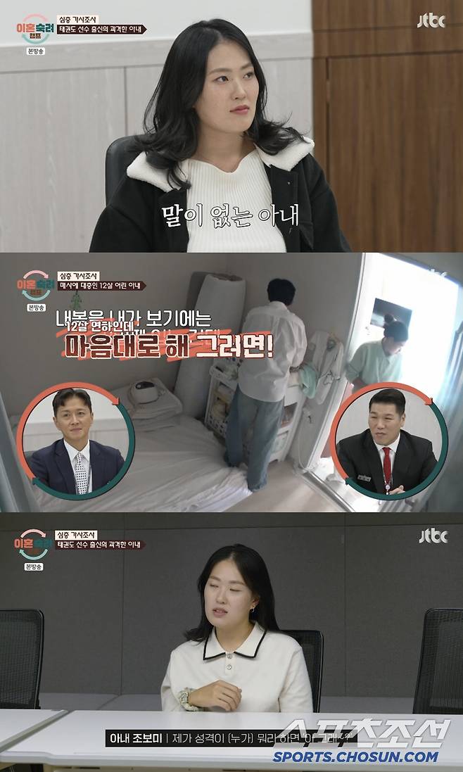 아내에게도 문제는 있었다. 아이가 머리를 묶고 싶다고 하자 "XX야"라며 욕설을 했고, 남편에게도 막말을 쏟아냈다. 남편은 "저는 킥복싱을 7년 했는데 (태권도 겨루기 선수였던) 아내가 말하다가 자동차 키 던지고 발로 차고 해서 항상 멍이 들었다"고 토로했다.