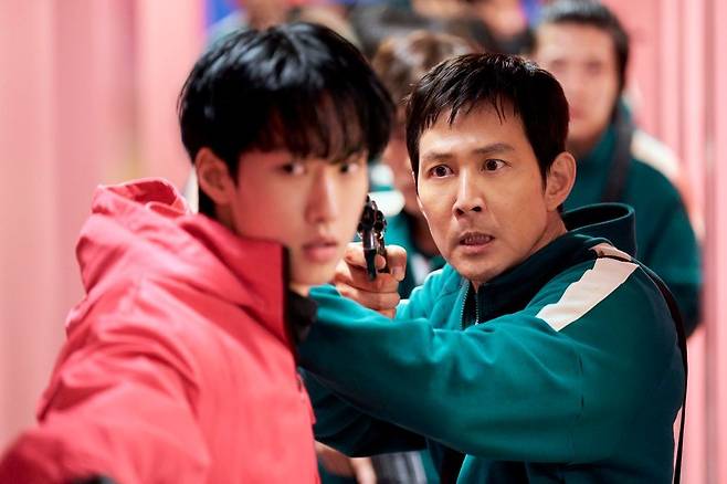 참가자들의 반대편에 서 있는 수많은 핑크 가드 가운데 얼굴을 드러낸 '노을'(박규영 분)과 '딱지남'의 모습 역시 눈길을 끈다. 돈이 절실히 필요해 핑크 가드로 잔혹한 게임에 참여했지만, 그럼에도 자신만의 신념을 잃지 않으려고 하는 '노을'과 1화에서 강렬한 임팩트를 남긴 게임의 모집책 '딱지남'은 시청자들의 다양한 담론을 끌어내며 작품 공개 2주 차인 지금까지도 화제를 모으고 있다.