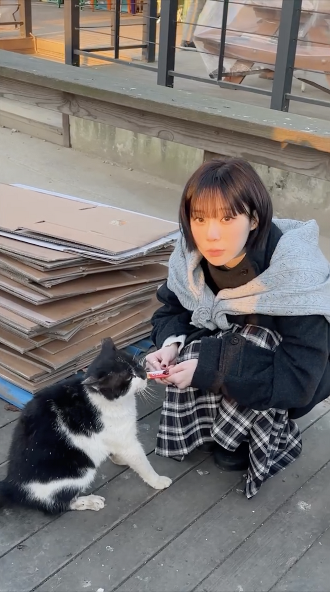 에스파 윈터, 핫도그 물고 귀여움 폭발... 츄르 건네는 모습에 '심쿵'