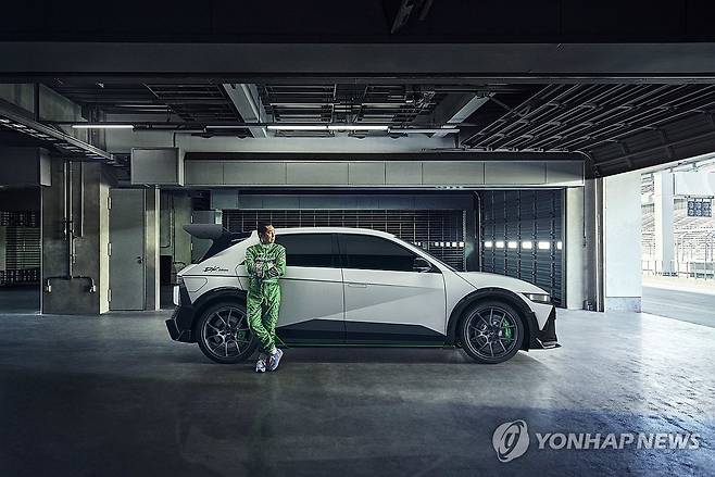 (서울=연합뉴스) 현대자동차가 10일 일본 도쿄 마쿠하리 멧세 컨벤션센터에서 열린 일본 최대 자동차 튜닝 박람회 '2025 도쿄 오토살롱'에서 '아이오닉 5 N DK 에디션'을 공개했다고 밝혔다. 일본 레이싱 드라이버인 츠치야 케이치가 아이오닉 5 N DK 에디션과 기념 촬영하고 있다. 2025.1.10 [현대자동차·기아 제공. 재판매 및 DB 금지]