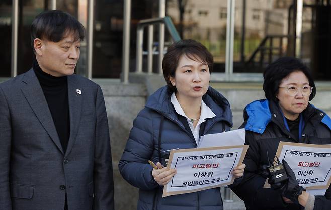 | ▲ 더불어민주당 이언주 최고위원을 비롯한 법률위원회·국민소통위원회·허위조작감시단 소속 의원들과 관계자들이 10일 오후 서울 서대문구 국가수사본부 민원실 앞에서 국민의힘 '진짜뉴스발굴단' 고발 기자회견을 열고 있다. 민주당은 이날 "국민의힘 '진짜뉴스발굴단'이 이재명 대표와 외신기자들과의 간담회를 음해"했다며 국민의힘 이상휘 미디어 특위 위원장 겸 진짜뉴스발굴단장과 단원들을 국가수사본부에 '허위 사실적 명예훼손'으로 고발했다. |