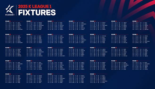 한국프로축구연맹(총재 권오갑)이 2025시즌 K리그1 정규라운드 1라운드부터 33라운드까지의 일정을 발표했다. K리그1은 디펜딩 챔피언 울산부터 승격팀 안양까지 총 12개 팀이 참가하며, 정규라운드는 팀당 33경기씩 총 198경기를 치르게 된다.