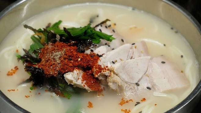 우선, 육수의 진한 국물 맛이다. 육수 제조시 멸치와 고기육수를 섞어 사용하는데, 돼지뼈 육수(사골)의 강한 맛을 멸치육수가 잡아줘 감칠맛이 배가 된다. 고명으로 올라가는 고기는 돼지고기 앞다리 살을 사용한다. 돼지고기 앞다리 살은 지방이 적고 살코기가 많아 쫄깃한 식감에 담백한 맛이 특징이다.