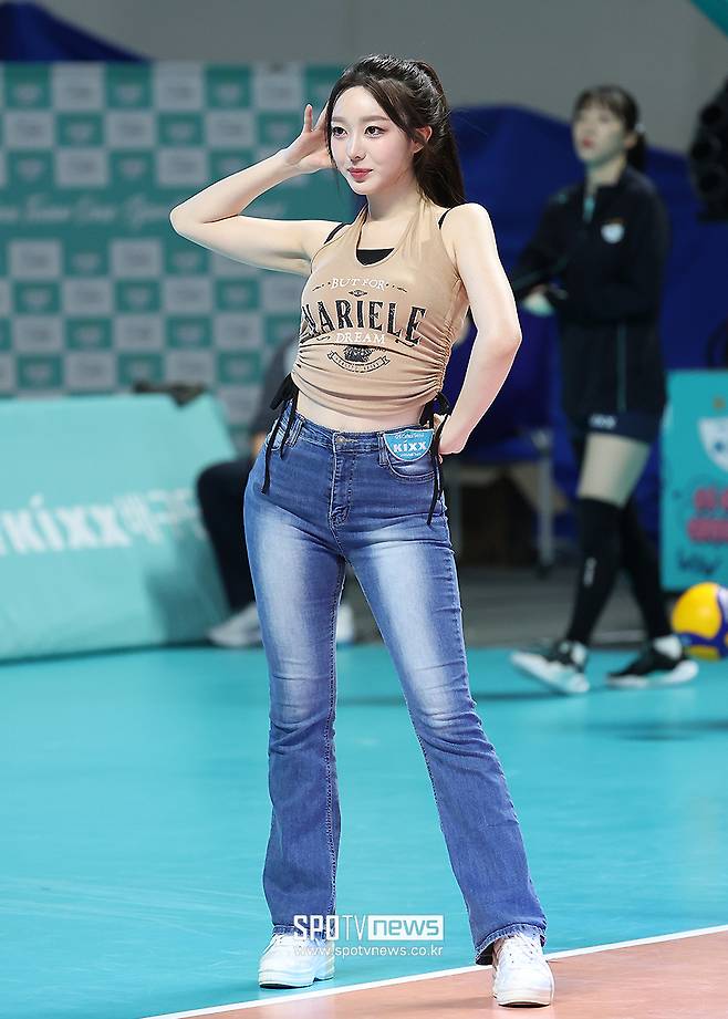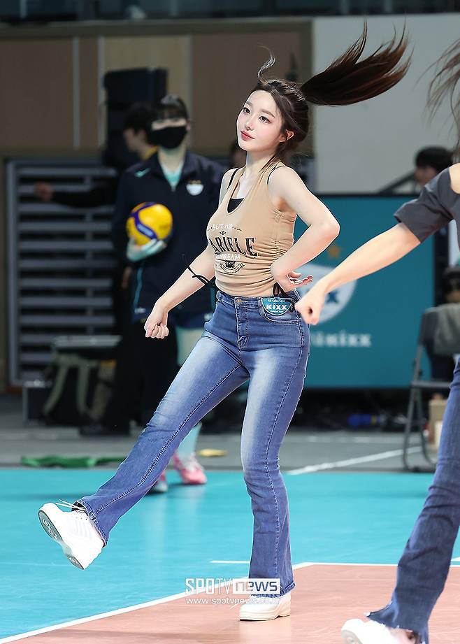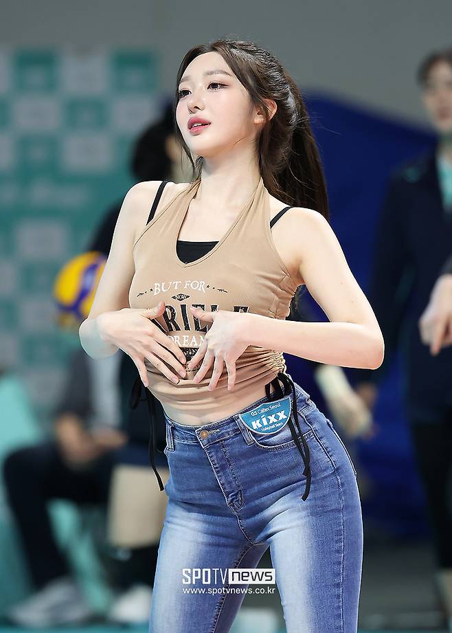 GS칼텍스 권희원 치어리더가 열띤 응원 무대를 펼치고 있다.