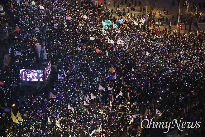 | ▲ ‘윤석열 즉각퇴진 사회대개혁 4차 범시민대행진’이 2024년 12월 28일 오후 서울 광화문 앞에서 윤석열퇴진 비상행동 주최로 열린 가운데, 참가자들이 응원봉 불빛을 밝히며 행진을 시작하고 있다. |