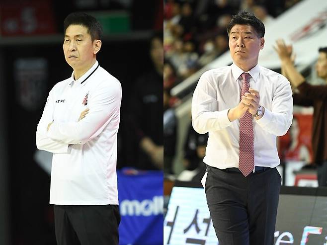 사진 설명 = 왼쪽부터 김상식 정관장 감독-조상현 LG 감독