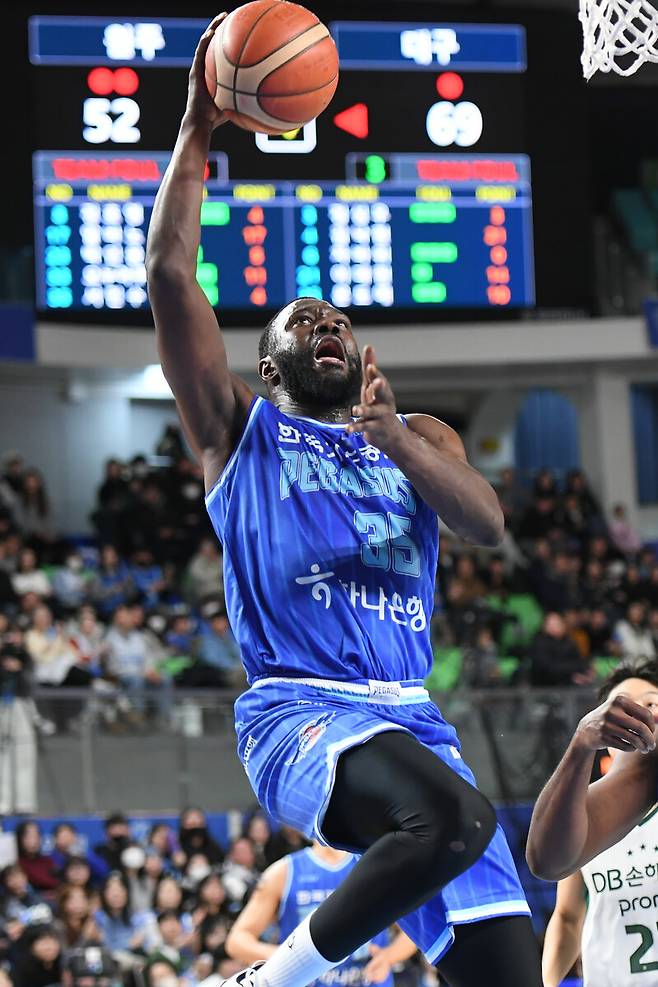 이날 경기에서 한국가스공사는 앤드류 니콜슨(204cm, F)과 전현우(193cm, F)가 결장했다. 1옵션 외국인 선수인 니콜슨이 부상으로 결장했기에, 한국가스공사는 외국인 선수 맞대결에서 밀릴 수 있었다. DB의 치나누 오누아쿠(206cm, C)가 최근 좋은 컨디션을 보이면서 맹활약했기에 더욱 그랬다. 그렇기에, 은도예의 활약이 중요했다.