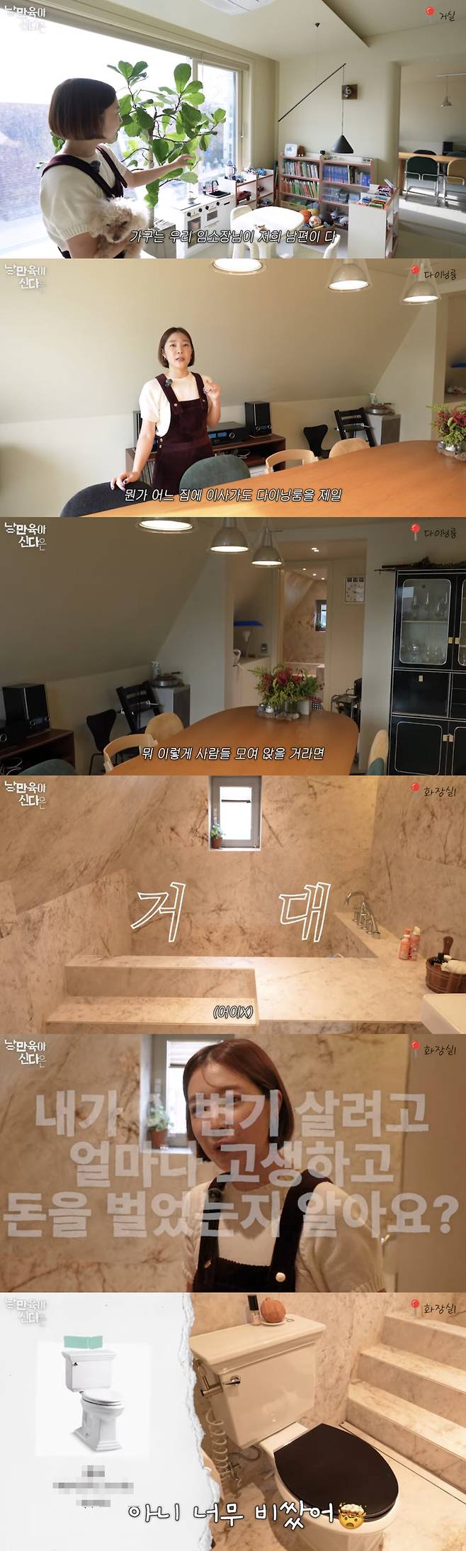 화장실에는 노천탕도 있었고 비싼 변기도 보였다. 신다은은 "내가 이 변기를 사기 위해 얼마나 고생하고 돈을 벌었는지 알아요? 너무 비쌌다. 화장실에 욕심이 많아서 수전도 다 맞췄다"라고 말했다.