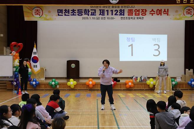 지난 10일, 면천초등학교는 특별한 졸업식을 열었다. 본교 체육관인 지겸관에서 열린 이번 졸업식은 기존의 형식을 벗어나 전래놀이 강사를 초빙해 '놀이와 함께하는 졸업식'으로 진행됐다. 졸업생뿐만 아니라 교직원, 전교생과 학부모가 함께 참여하며 웃음과 감동이 넘치는 시간이 됐다.