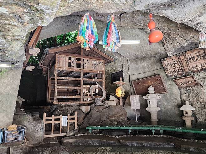 | ▲ 신비한 샘물이 흐르는 오쿠노미야(奧宮) 재니아라이벤텐신사의 내부에 있는 동굴에는 돈을 씻으면 불어난다는 신기한 샘물이 흐른다 |