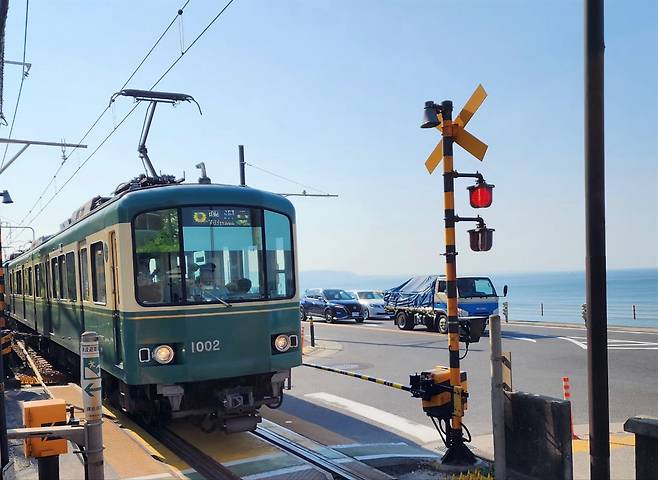 | ▲ 가마쿠라를 달리는 에노덴 가마쿠라 시내를 달리는 노면전차로 주택가와 바닷가를 달린다 |