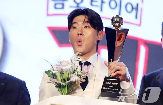 득점과 장타율(0.647) 부문에서 1위를 차지하며 올해 KBO 시상 기록에서 투타 통틀어 유일하게 2관왕을 차지한 김도영은 최연소 30-30 달성, 역대 최소 경기 100득점, 역대 단일 시즌 최다 득점 등 각종 신기록을 갈아 치우면서 정규시즌 MVP와 3루수 골든글러브를 수상했다.