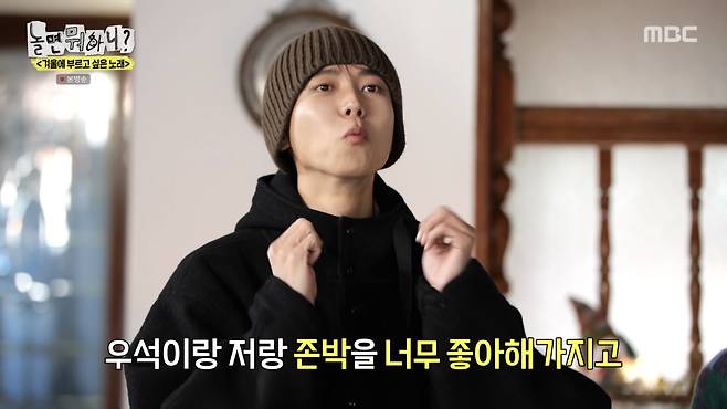 또, "존박한테 노래 맛있게 하는 법을 배워서 노래 부를 일 있을 때 활용하면 되겠다 싶었다. 심지어 이틀 전에 '놀뭐' 얘기도 했었다"라고, 존박의 등장에 놀랄 수밖에 없었던 비하인드를 풀었다.