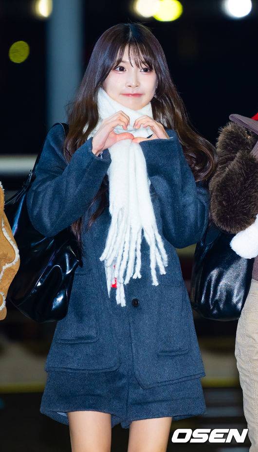 우아 민서가 출국장으로 향하며 포즈를 취하고 있다. 2025.01.12 / rumi@osen.co.kr