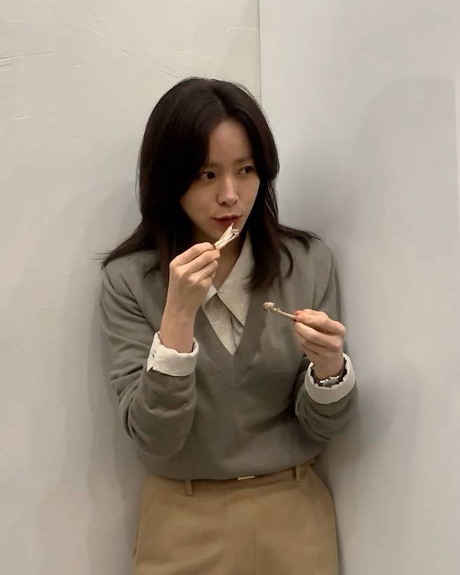 배우 한지민이 몰래 치킨을 먹다 딱 걸렸다.