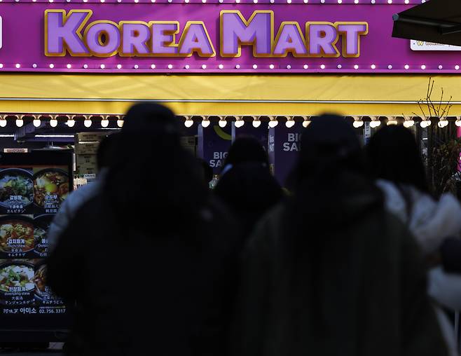 | ▲ 7일 서울 중구 명동에서 관광객을 상대로 한국 상품을 판매하는 상점 앞을 지나가고 있는 시민들의 모습. |