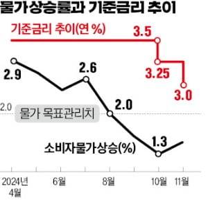 한은은 2023년 2월부터 작년 8월까지 13회 연속 연 3.5%로 금리를 동결했다가 10월과 11월 두 달 연속 금리를 인하했다. 한은은 작년 상반기 동결 과정에서 내수 경기 회복보다 물가 안정을 최우선으로 제시했다. 기준금리 인하 실기론을 제기하는 경제학자들도 작년 상반기 인하는 시기상조였다고 본다. 작년 3월 소비자물가는 전년 동월 대비 3.1% 상승하는 등 여전히 불안했기 때문이다.