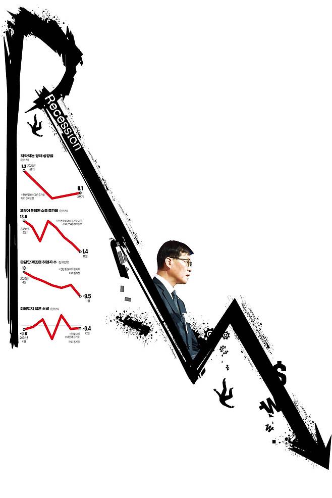 속도 조절을 시사했던 한은은 다음 달인 11월 28일 열린 통화정책방향 회의에서 금리를 0.25%포인트 ‘깜짝 인하’했다. 이날 수정 경제전망을 통해 2024년 경제성장률 전망치를 2.4%에서 2.2%로, 2025년 성장률은 2.1%에서 1.9%로 내렸다. 이 총재는 “구조적 수출 부진과 트럼프 신정부의 정책 불확실성으로 성장 하방 압력이 커졌다”며 “금리를 추가 인하해 성장 하방 리스크를 완화하는 것이 적절하다고 판단했다”고 말했다. 수출 증가세 둔화와 내수 침체를 안이하게 바라봤다가 뒤늦게 입장을 바꾼 것이다. 산업통상자원부에 따르면 수출 증가율은 지난해 7월 13.9%에서 9월 7.1%로 한 자릿수로 하락한 데 이어 11월엔 1.4%까지 추락했다. 석병훈 이화여대 경제학과 교수는 “지난해 한은의 기준금리 인하 결정이 지연된 상황에서 올해도 늦어지면 과도한 내수 침체를 유발할 수 있다”며 “이달에 서둘러 기준금리를 인하해야 한다”고 주장했다.
