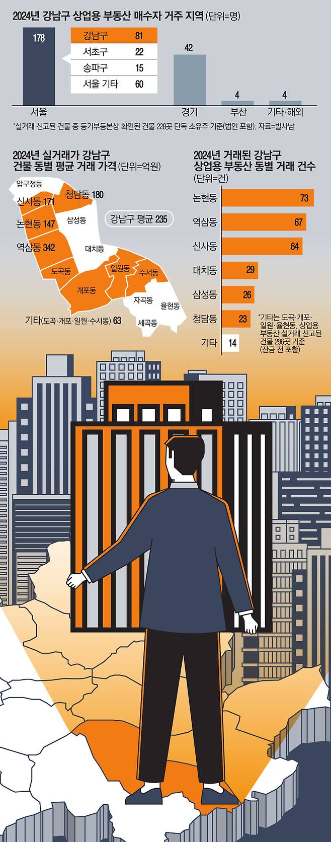 매일경제 취재팀이 빌사남과 함께 2024년 서울 강남구에서 실거래된 상업용 부동산(건물)의 거래 형태와 소유자 현황을 전수조사해 보니 한국 부자들의 자산 증식·투자 패턴이 한눈에 들어왔다.