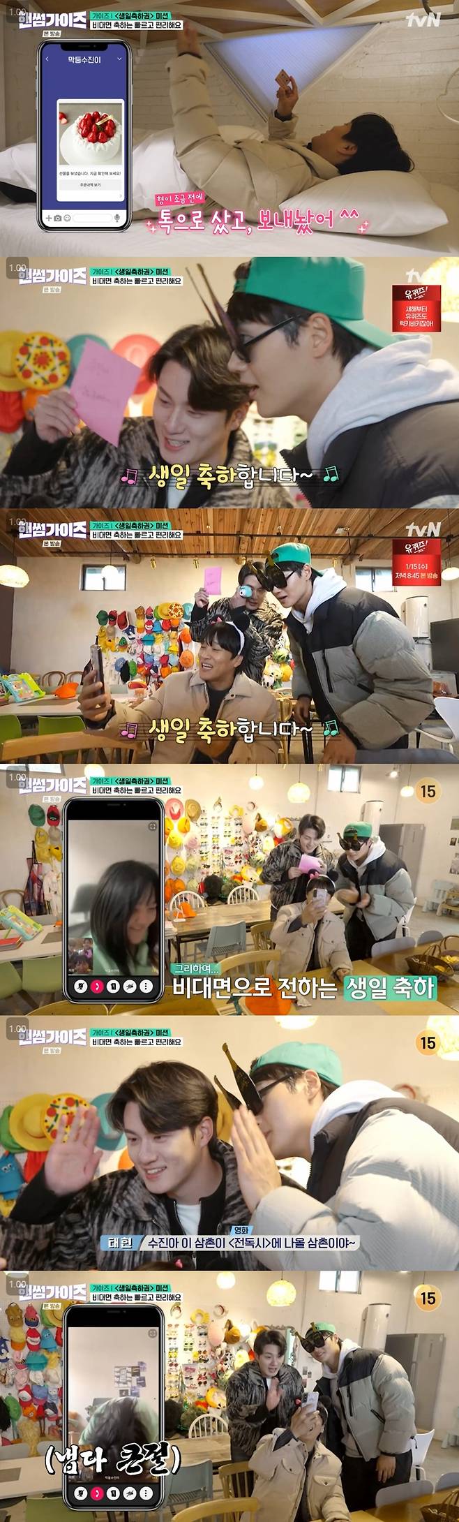 이에 빵터진 신승호와 오상욱은 "영상통화로 이제 축하하면 문제될 게 없다"는 차태현의 말에 직접 축하에 나선다.