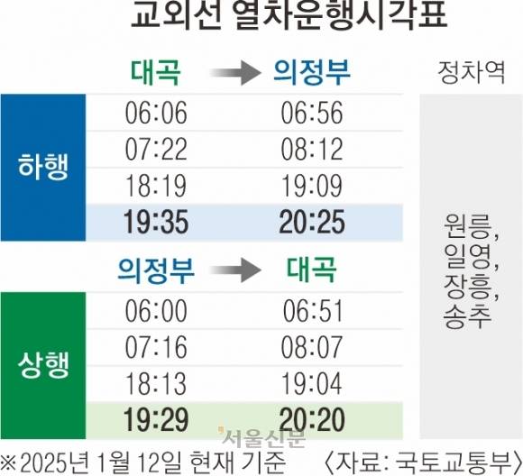 고양~의정부 간 교외선 열차가 21년 만에 다시 운행을 시작했으나 운행횟수가 하루 편도 4회에 불과하고 속도 역시 너무 느려 불만을 사고 있다.