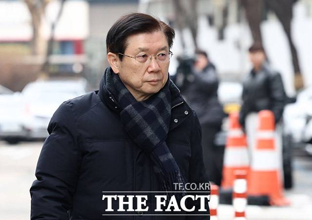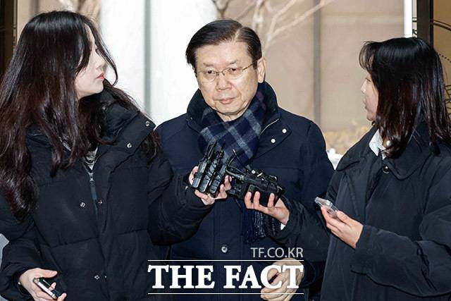 [더팩트ㅣ남윤호 기자] 윤석열 대통령 체포영장 집행을 방해한 혐의를 받는 박종준 전 대통령 경호처장이 13일 오전 서울 서대문구 경찰청 국가수사본부에 조사를 받기 위해 출석하고 있다.