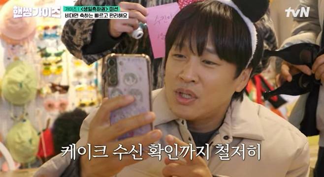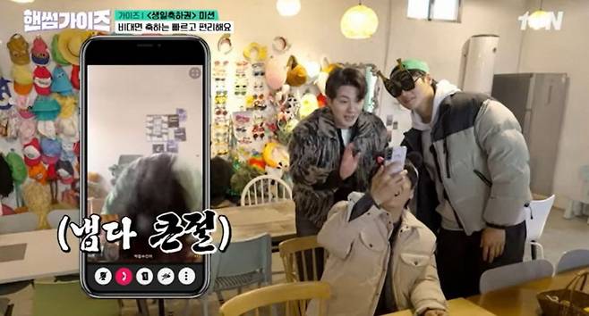 이날 '가이즈' 팀 차태현은 신승호, 오상욱과 함께 이번 주가 생일인 사람을 찾아 케이크 선물을 하며 축하를 해줘야 하는 '생일축하 미션'을 뽑아 수행하던 중 번뜩이는 재치를 드러내 시선을 모았다.