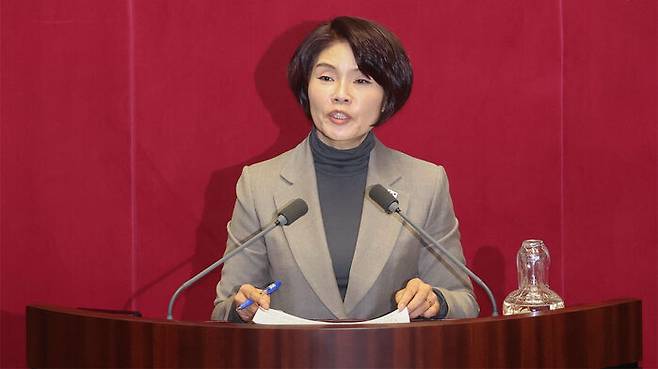 ▲ 더불어민주당 한정애 의원이 9일 오후 국회 본회의에서 '윤석열 대통령 위헌적 비상계엄 선포 내란혐의 및 제주항공 여객기 참사 진상규명'과 관련해 질문하고 있다.