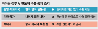 다만 한국 등 우방국은 현재처럼 AI 반도체를 제한 없이 수입할 수 있도록 길을 열어뒀다.