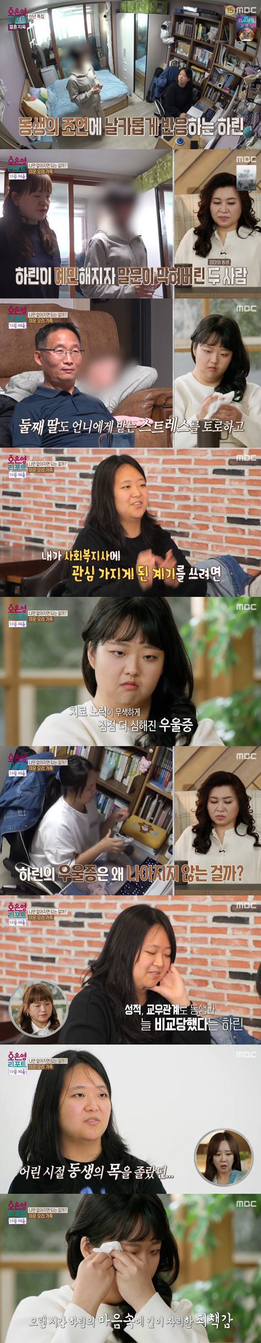 엄마는 "성격이 정 반대다. 독립적이고 혼자 다 해결하려고 한다. 대학원도 돈 벌어서 갔고 척척해서 신경 쓸게 없었다"라며 "하린이는 동생에 대해서 콤플렉스를 느끼고 비교한다고 생각하덜. 아픈 손가락이다. 옷을 사줬어도, 먹는 걸 사줬어도 더 사줬고 돈을 줬어도 더 많이 줬고. 그걸 사랑하지 않고 간섭한다고 생각한다"라고 말했다.