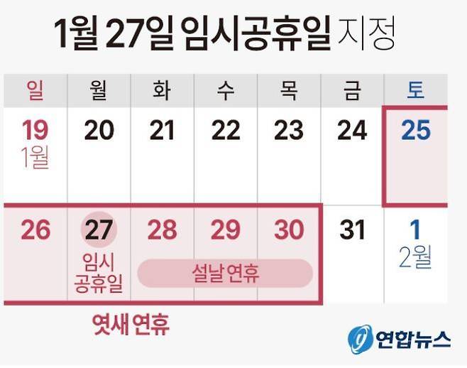 [1월 27일 임시공휴일 지정 (사진=연합뉴스)]