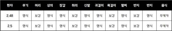 2.48과 2.5는 팔찌 마법 시전 속도 마테리아 2개 차이다. 2.48의 경우 백마도사와 호환이 쉽다.