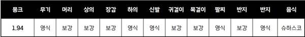 가장 높은 DPS를 기록하는 세팅으로, 몽크 1.94 세팅과 호환성이 높다.