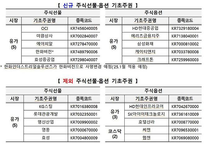 그러면서 기초주권이 제외될 예정인 주식선물 및 주식옵션은 오는 2월 13일까지만 거래가 가능해 투자자의 유의가 필요하다고 전했습니다.