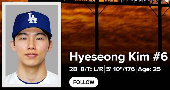 14일(이하 한국시간) 메이저리그 공식 홈페이지 MLB.com의 김혜성 선수 프로필에는 '#6'이 추가됐다. 계약 이후 등번호 자리가 비어 있었던 김혜성은 6번을 부여받았다.