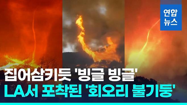 미국 서부 최대 도시 로스앤젤레스(LA)에서 동시다발 산불이 이어지는 가운데 지난 11일(현지시간) LA 카운티 서부 해변 퍼시픽 팰리세이즈 산불 현장에서 '파이어네이도'가 포착됐습니다.