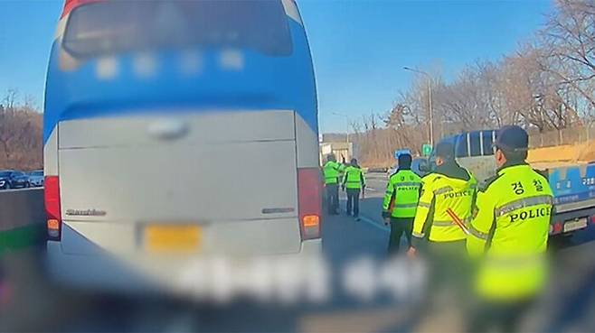 이를 본 9기동대는 모두 차에서 내려 몸으로 띠를 만들며 신속하게 차로를 확보하고 버스와 SUV를 분리해 2차 사고 예방에 나섰습니다.