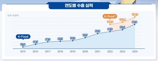 농식품부가 밝힌 지난해 K-푸드 플러스 수출액(잠정)은 전년보다 6.1% 증가한 130억3천만달러로 역대 최고 실적을 달성했습니다. 라면과 쌀가공식품 등이 전체 수출을 견인했습니다.