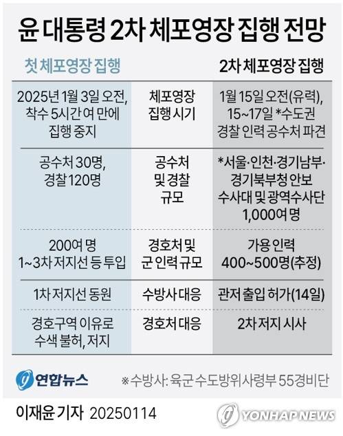 [그래픽] 윤 대통령 2차 체포영장 집행 전망
