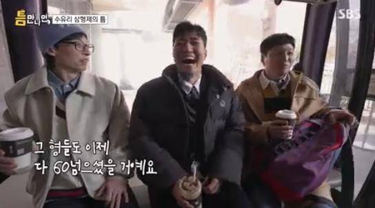 이에 김종민과 김대명은 당연하다는 듯이 "그럼요. 다 뒤져가지고"라면서 웃었고, 유재석은 "그런 형들도 이제는 다 60살 넘었을거다. 지금 후회하고 있을 것"이라고 말해 웃음을 자아냈다.