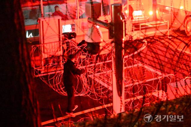 경호처, 체포조 도착하자 관저 입구 철조망 설치 [포토뉴스]