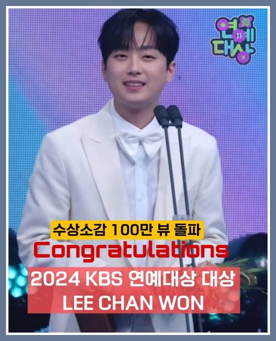 'KBS의 아들' 이찬원, '2024 KBS 연예대상' 대상 수상 소감 100만 뷰 돌파