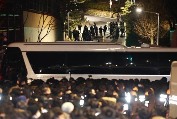 고위공직자범죄수사처와 경찰이 오전 7시 30분께 사다리를 타고 대통령 관저 정문 앞을 가로막고 있는 버스를 넘어 내부로 진입했습니다.